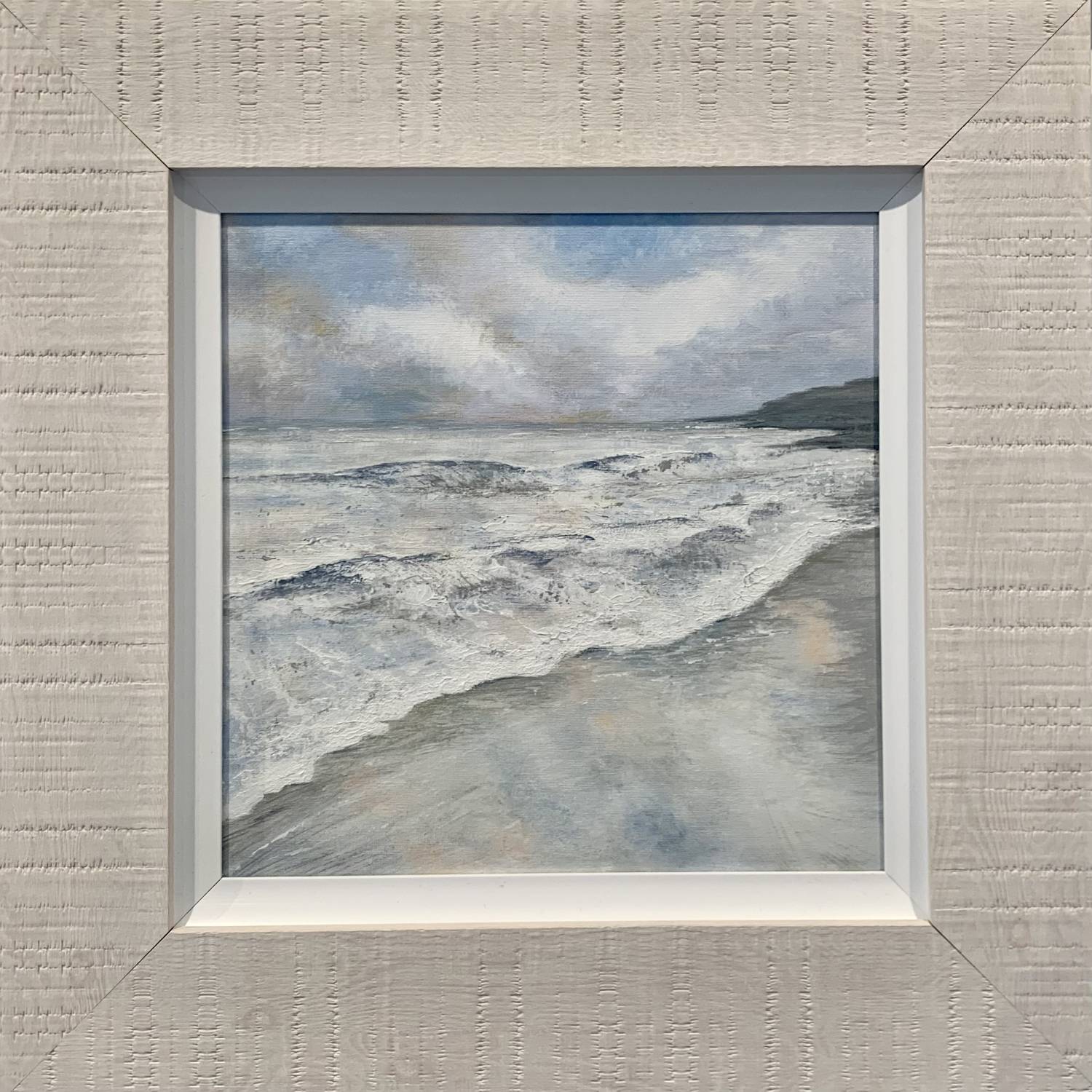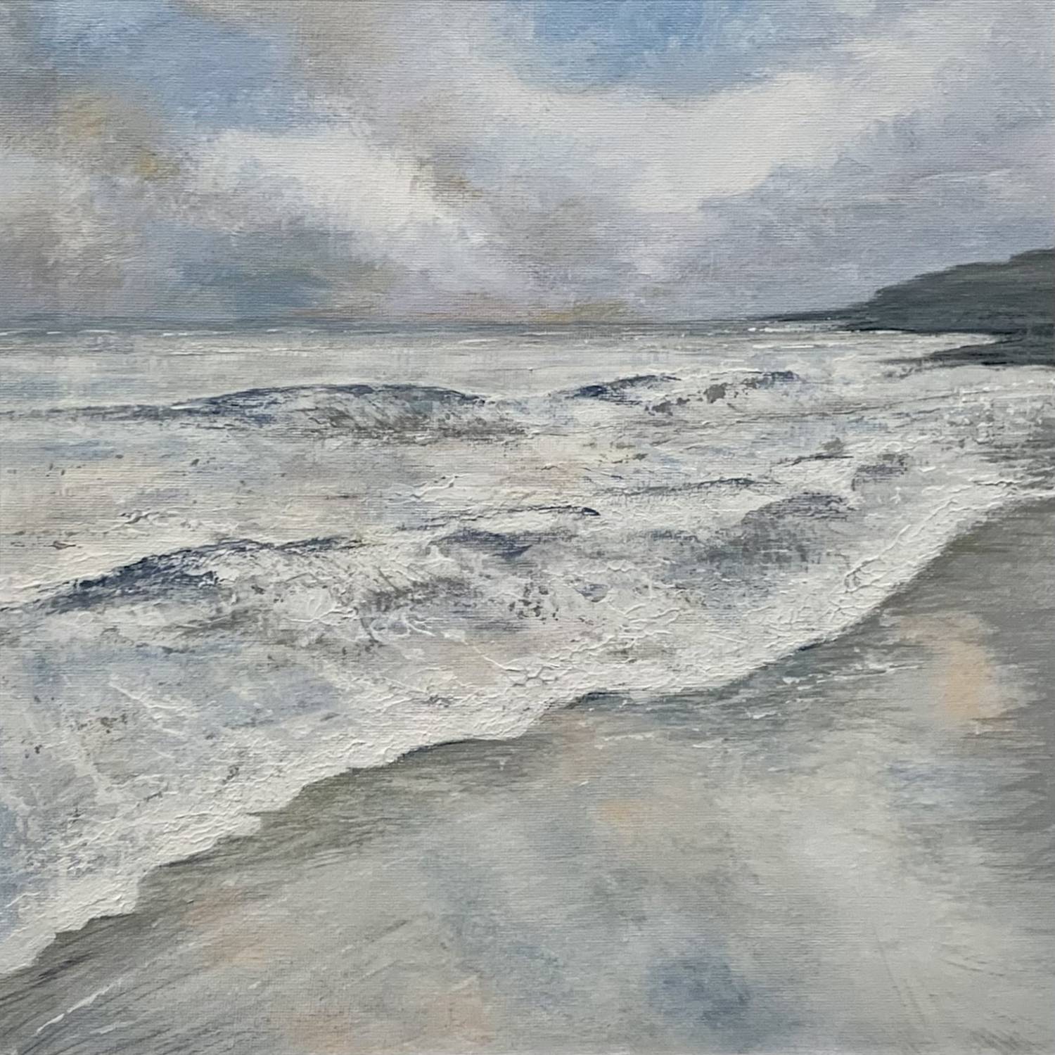 This painting shows the glassy refections on the sand, 'Looking Back' is a perfect title with echoes of the past,  yet a timeless image that only changes with the seasons and the weather of the day.