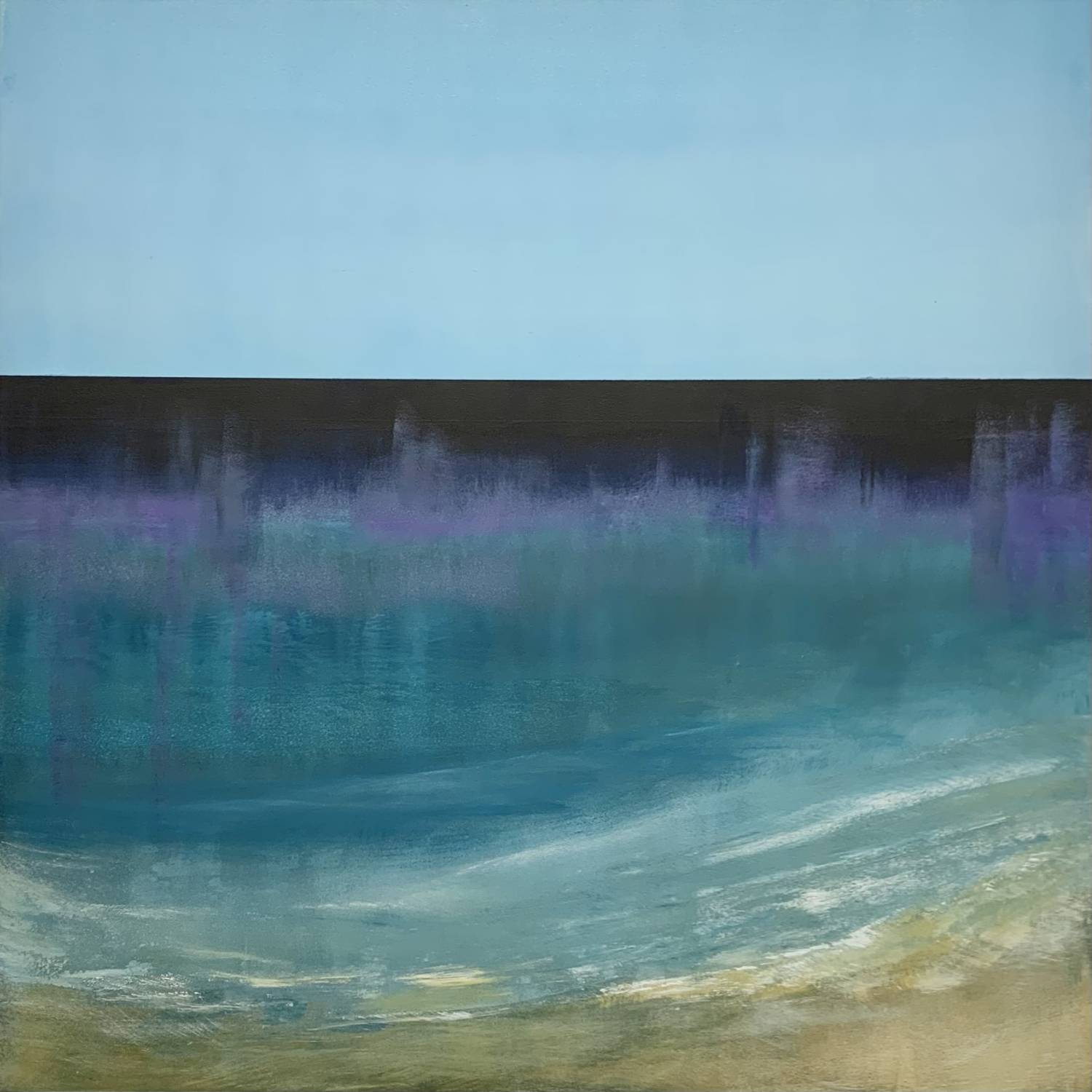 Keynvor Teg translated from Cornish, refers to a beautiful ocean. This semi abstract seascape is dazzling as the light seems to visually vibrate on the seas surface.