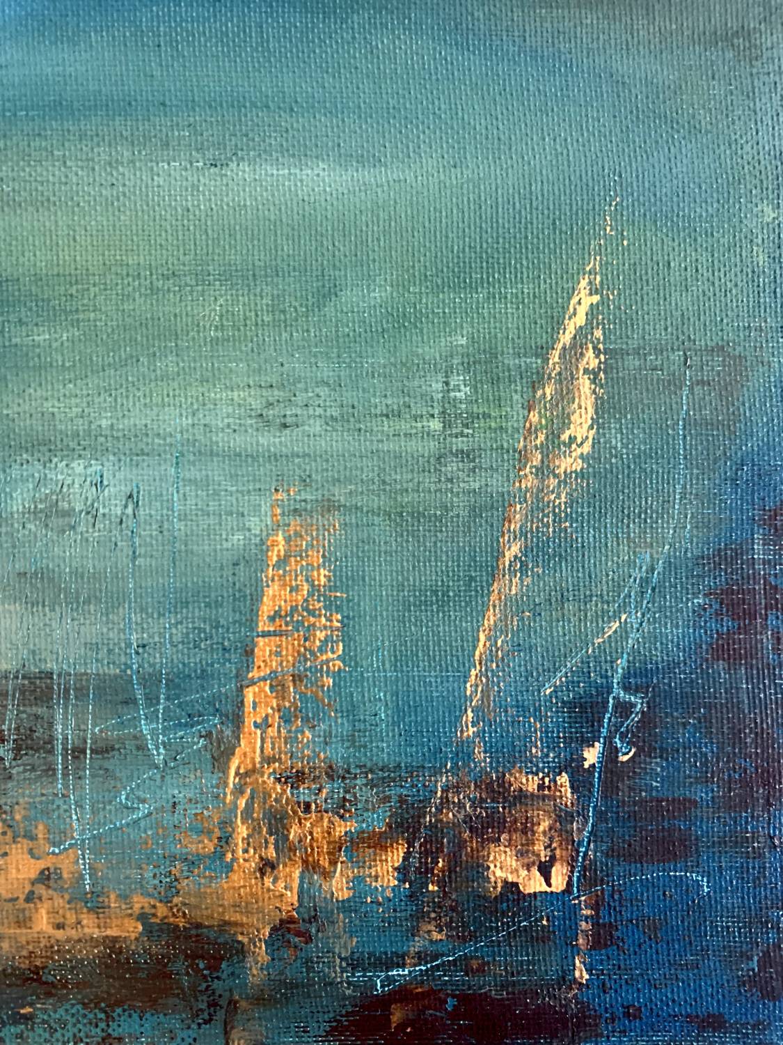 This oil painting on stretched canvas panel has a wonderful glow. It's available ready to hang, presented in a white St Ives frame, please see photos.