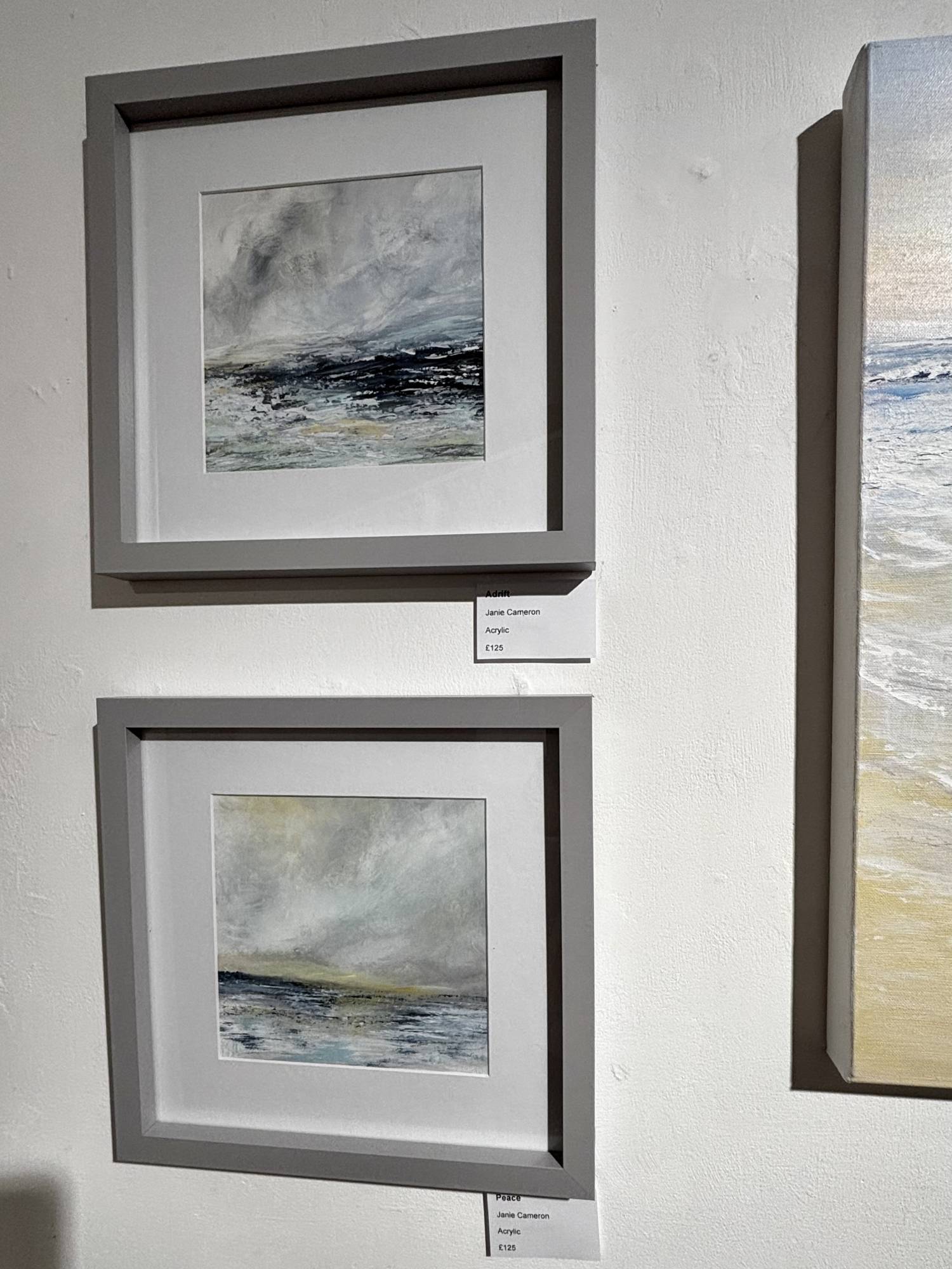 'Peace'' is a beautifully serene abstract seascape, a perfect pair with 'Adrift'. Presented in matching grey modern simplicity frames perfectly setting off this coastal scene.