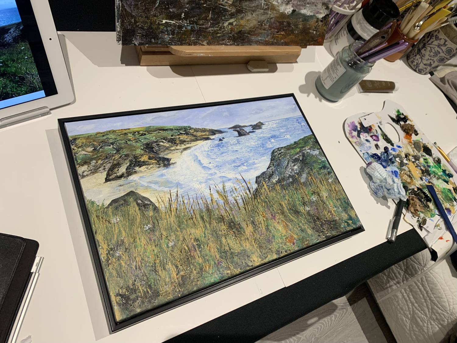 Previous Next Paintings Previous work Next work Porthcothan Painting Acrylic on canvas framed 28 x 41 x 3 cms (11.02 x 16.14 x 1.18 ins) Ref: 658085 £ 120.00 Enquire about this item View over Porthcothan bay from the South West Coastal Path.
